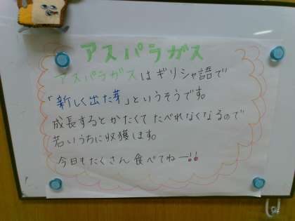 牛乳も「ミルク」と表記したら、全てがカタカナとなる本日のメニューです。来週の献立は、漢字とひらがなが多いようですね。