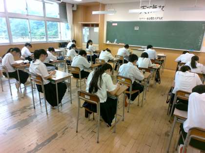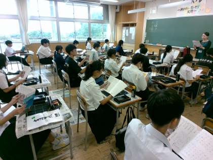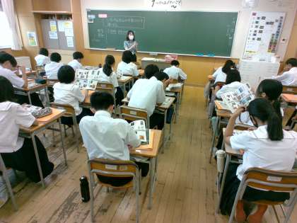 本日、他県の先生が本校の視察にお出でになりました。写真右から1組美術、2組国語、3組英語の授業の様子です。この後は、3年生の授業を見に行かれました。