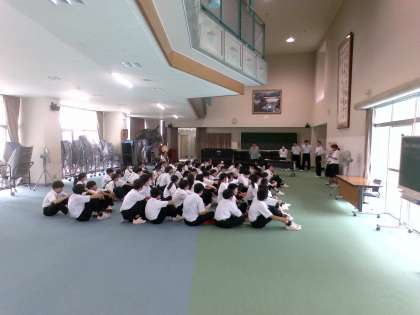 学年生徒会が企画したクイズ大会をしていました。暑い中ですが、みんな楽しそうです。