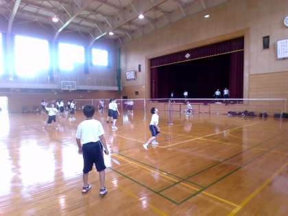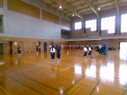 バレーボール部、バドミントン部の活動の様子です。活動は短時間ですが、水分補給や休憩をしっかりと!