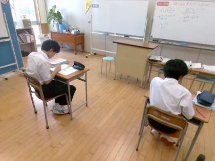 2組数学の様子です。1学期に進むべき範囲が終わったので、ワークを使って問題演習を行いました。