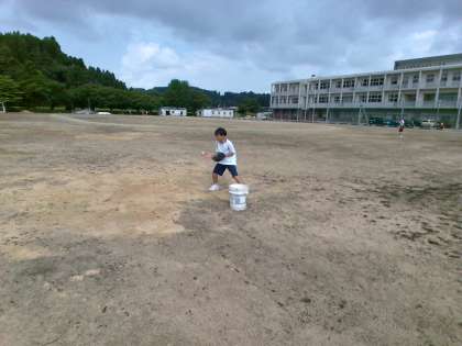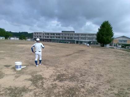 野球部の様子です。顧問の先生にノックをしてもらっています。