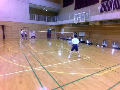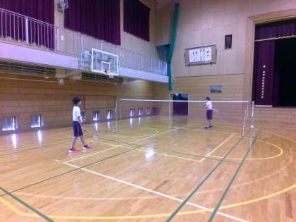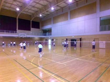 男子バドミントン部の様子です。今日は、プレーしやすい気候です。楽しく活動しています。