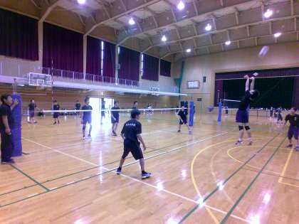 男女バレーボール部の活動の様子です。男子は、紅白戦を行っていました。