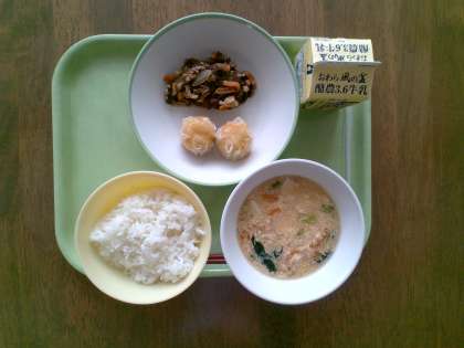 にんじんシューマイ もずくのチャプチェ かきたま汁