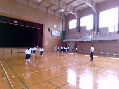 空間を使った攻撃をねらいとし、その練習を「アルティメット」模した活動で行いました。