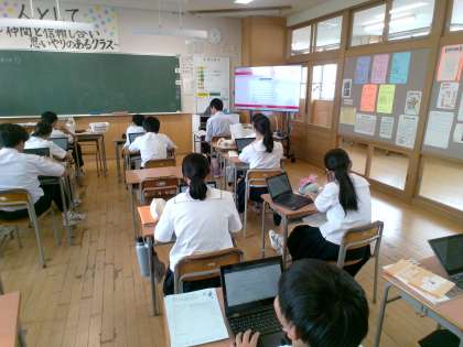 1年生(写真下)は国語、2年生(写真中)は英語、3年生(写真上)は技術でした。