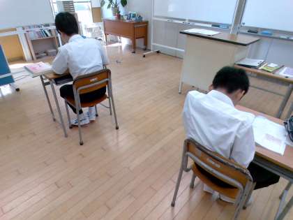 2組数学の様子です。1年生は1学期の復習、2年生は1次関数のグラフの式の問題演習を行いました。