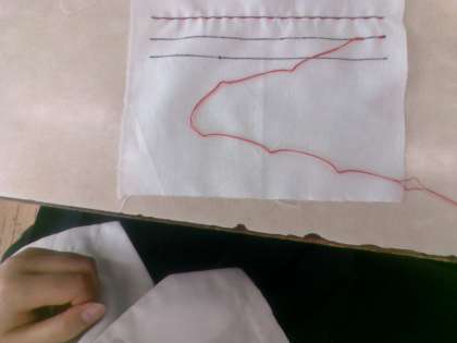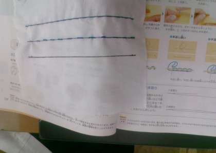 来週から始まる刺し子の作品制作に向けて、小学校で学習した玉結びや玉止め、基礎縫いの復習をしています。
