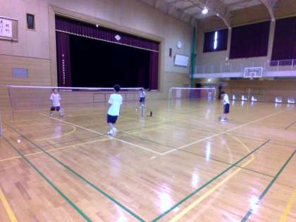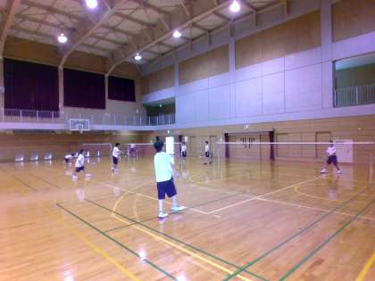 午後から体育館では、男子バドミントン部が活動していました。全面を使用できるため、のびのびと活動していました。