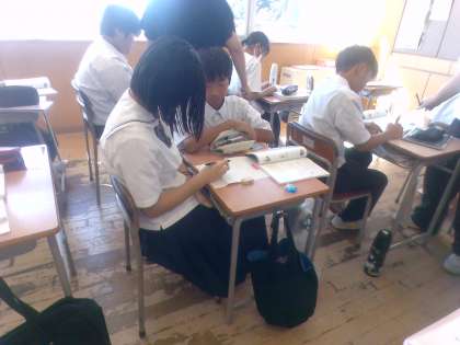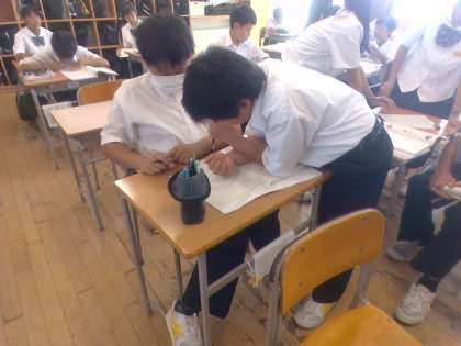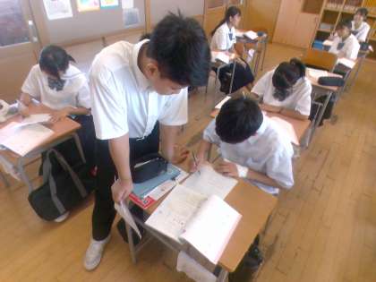 クラスメイトと教え合いながら、課題に取り組んでいます。
