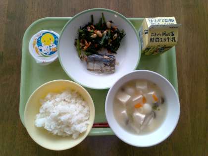 さんまの生姜味 団子汁 大豆とひじきのごま和え