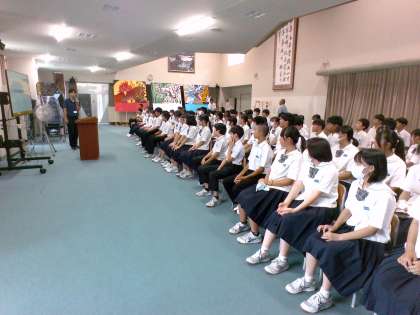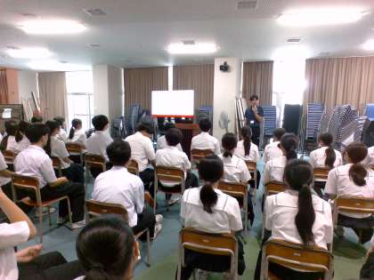 先週より教育実習を行っている本校の卒業生が、自身が城山中学校に通っていた当時に考えていたことや進路選択、中学校卒業後のこと等について話をしました。