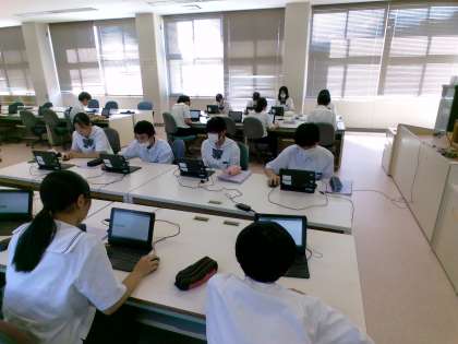 2組の様子です。表計算ソフトの関数を使って課題に取り組みました。