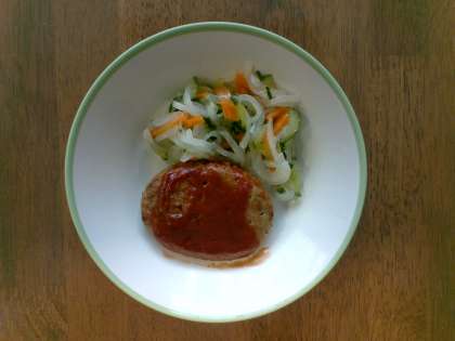 ハンバーグのケチャップかけ 大根サラダ クリームスープ