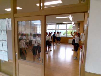 今日はあいにくの雨なので、各団、教室等で団演技の練習を行っています。
