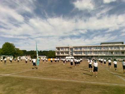 青龍団、団演技の練習中です。初めて、グラウンドでの練習です。