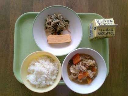 厚焼き卵 香味和え 肉豆腐 ごはん 牛乳