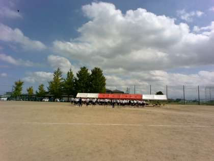 「団演技」前に各団、気合を入れていました。最後の演技に向け、団結力が一層高まっているようです。