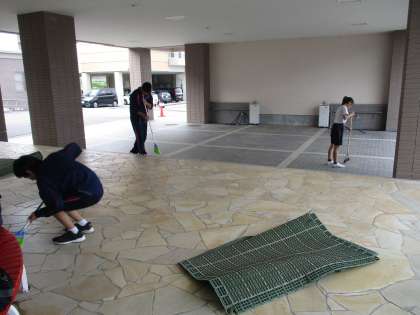 皆でがんばった体育大会。閉会式の後、テントや器具の片付けも皆で協力して終えました。そして、多くの生徒が下校したころ、玄関からは、シャッシャッシャッという音が聞こえました。土で汚れた玄関を、ほうきできれいに掃いている音でした。グラウンドで練習があった日の放課後は、よくこの音が聞こえました。練習や競技で疲れていましたが、進んで清掃する姿がありました。