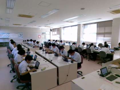 3組の様子です。表計算ソフトを用いた課題に取り組みました。次回からは、技術室で「ダイナモラジオの製作」に取りかかります。