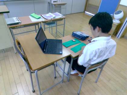 2組英語の様子です。重要表現をカードでまとめて、理解しようとしています。