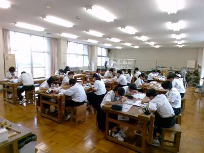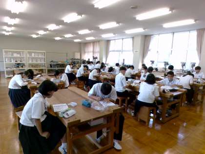 2組の様子です。「ダイナモラジオの製作」に取りかかりました。今日は、授業概要、様々な部品の確認をしました。