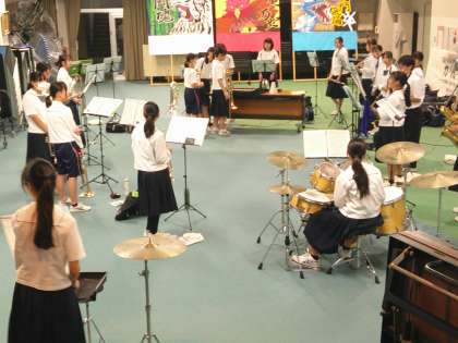 今日は、自分たちだけで円陣を組んで合奏をしています。自主的な活動、いいですね。