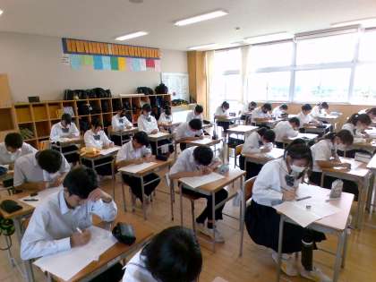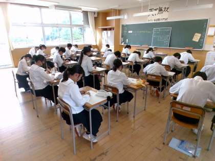 3組技術の様子です。 製図の課題に真剣に取り組んでいます。