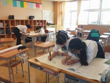 合唱の歌詞を模造紙に書いたり、、、、、