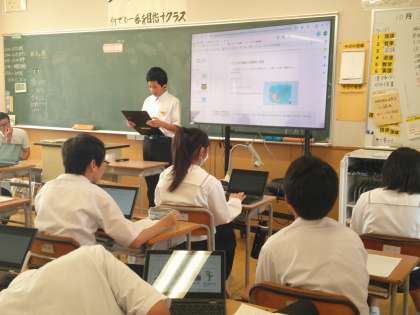 1学期から調べてきた「富山の魅力」について発表会をしています。
