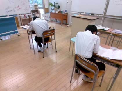 2組の様子です。中間考査に向けて、基本問題の確認をしています。