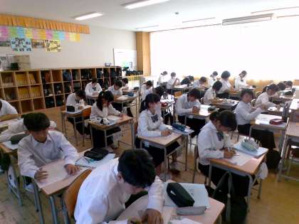 2組技術の様子です。等角図の学習をしました。コツをつかめば、比較的取り組みやすい製図法です。