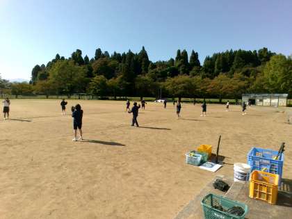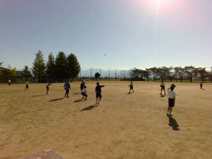 3組保健体育の様子です。ソフトボールの授業でキャッチボールをしていました。