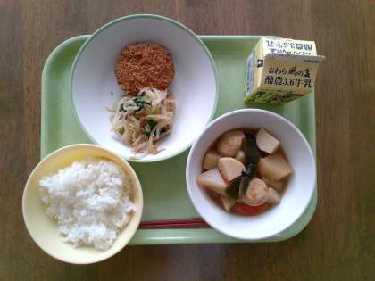 メンチカツ ごまびたし おでん ごはん 牛乳