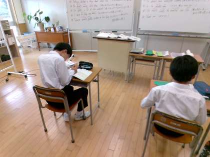 2組英語の様子です。1年生は、主語が三人称単数で現在形の場合の否定文、2年生は、「疑問視+to+動詞の原形」の表現を学びました。
