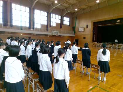 明日の富山市中学校文化祭での発表に向けて、合唱練習をしています。