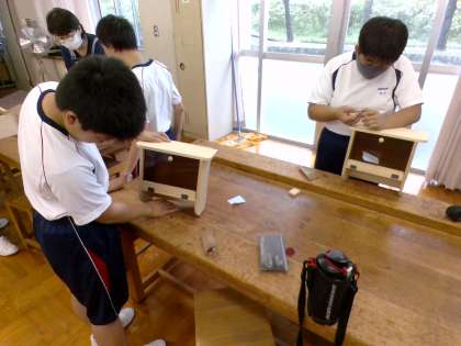 1組技術の様子です。今日は、塗装前の素地調整をし、その後塗装に進んでいきます。塗料には、ウッドワックスを使います。仕上がりが楽しみですね。