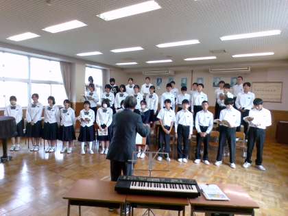 3組音楽の様子です。合唱コンクールに向けて頑張っています。