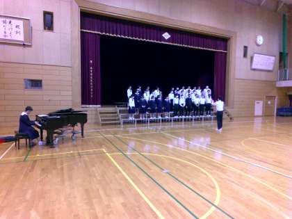 体育館では、3年生が歌う様子を2年生の生徒が見学していました。良い刺激を受けているようです。