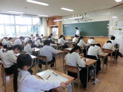 1組は英語、2組は保健体育、3組は理科の授業に取り組んでいます。