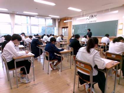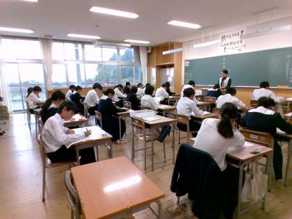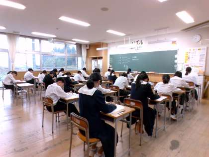 今日は英語と国語と理科の3教科があります。どのクラスの生徒も真剣に受けています。
