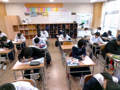 2組技術の様子です。第三角法による正投影図を学習しています。まずは、個人でしっかり考えてもらい、その後、学び合いです。