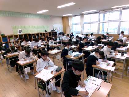 1組の様子です。3年生は、進路懇談会の真っ只中です。1年後には、みなさんも同じ境遇になります。今できることは、期末考査に向けてコツコツ焦らず学力をつけることです。頑張ってください。