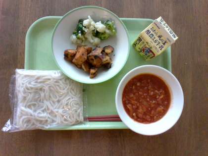 違う話ですが、今日のような献立の日は、ミートソースがシャツに付かないようにすることに気を遣ってしまいます。あと、ソフト麺をほぐすことにも。