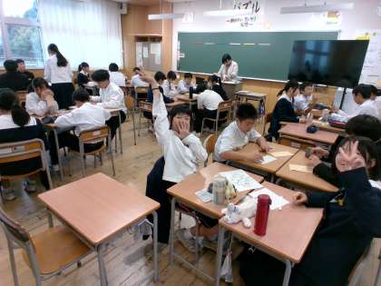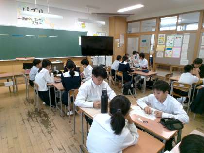 2組では、働くことの意義について考えるグループ学習中。自己実現のため、社会貢献のため、経済的に豊かになるため・・・いろいろ考えがあり、どれも間違いではない。