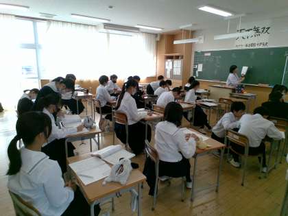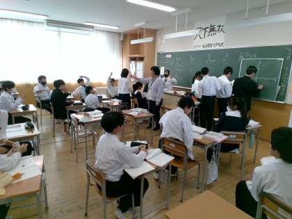 黒板に式やグラフを書こうと、何本もの手が挙がる。積極的に自分の考えを伝えようとする姿勢に感心します。