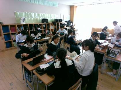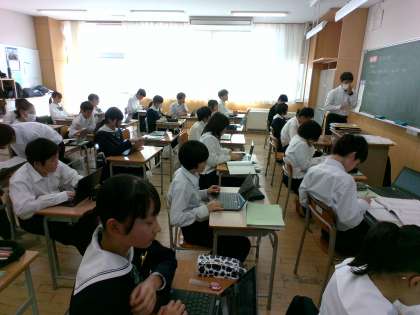 1年生(写真上)は英語。Which do you like, A or B? ん〜、AもBも好きではない自分は、どう答えればいいのか?無理にどちらかに寄せないで「どちらも、あまり好きではないのですけど…」ってどう言えばいいのかな?そう思うだけで、主体的。