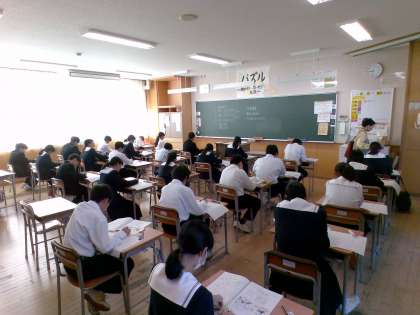 1時間目社会の様子です。早いものでもう2学期末考査です。努力の成果を発揮すべく、がんばりましょう。