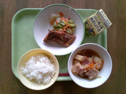 魚の竜田揚げ 甘酢和え ベーコンとじゃがいもの煮物